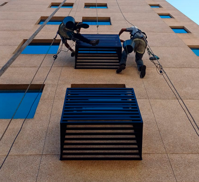 Nossa equipe especializada realiza instalações técnicas para sistemas de ar condicionado, com soluções que preservam a estética e integridade das fachadas. Utilizamos materiais de alta durabilidade e metodologias comprovadas para evitar infiltrações e garantir o perfeito funcionamento dos sistemas. Conheça nossas soluções personalizadas.